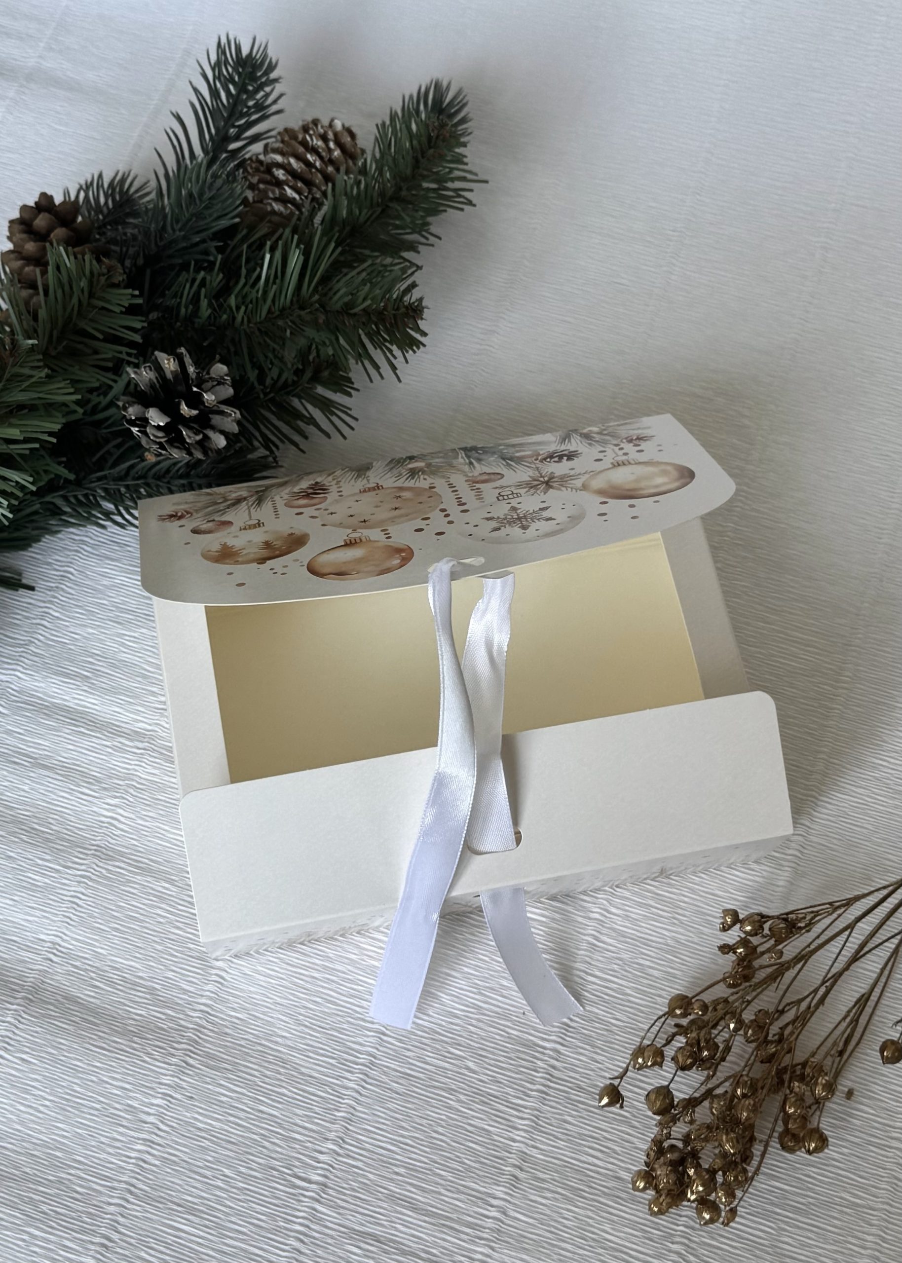Подарочная коробочка с лентой новогоднего дизайна. Подходит для упаковки кондитерских изделий. Может быть использована в качестве универсальной упаковки для размещения изделий ручной работы. Размер 16,5х11,5х5 см (цвет лент может отличаться от образца на фото), продается упаковками по 5 шт., цена указана за 1 шт.
