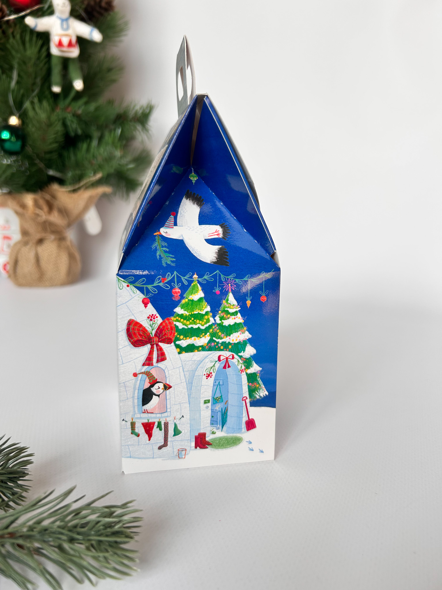 Коробка новогодняя подарочная Новогоднее иглу, 91х70х157 (+30) мм (домик)
