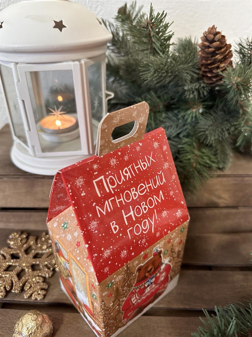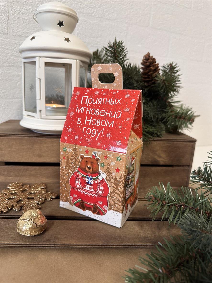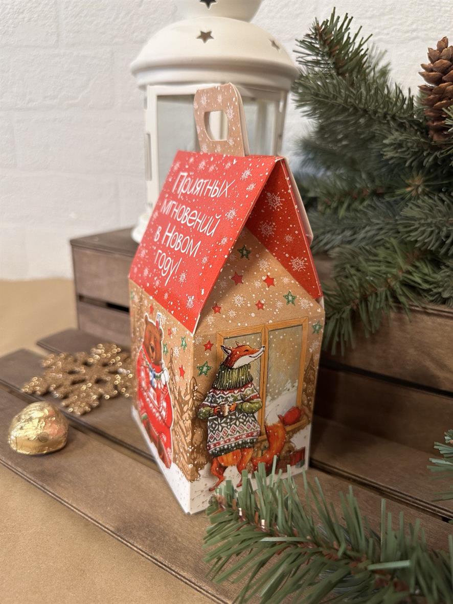 Коробка новогодняя подарочная Приятные мгновения, 91х70х157 (+30) мм (домик)