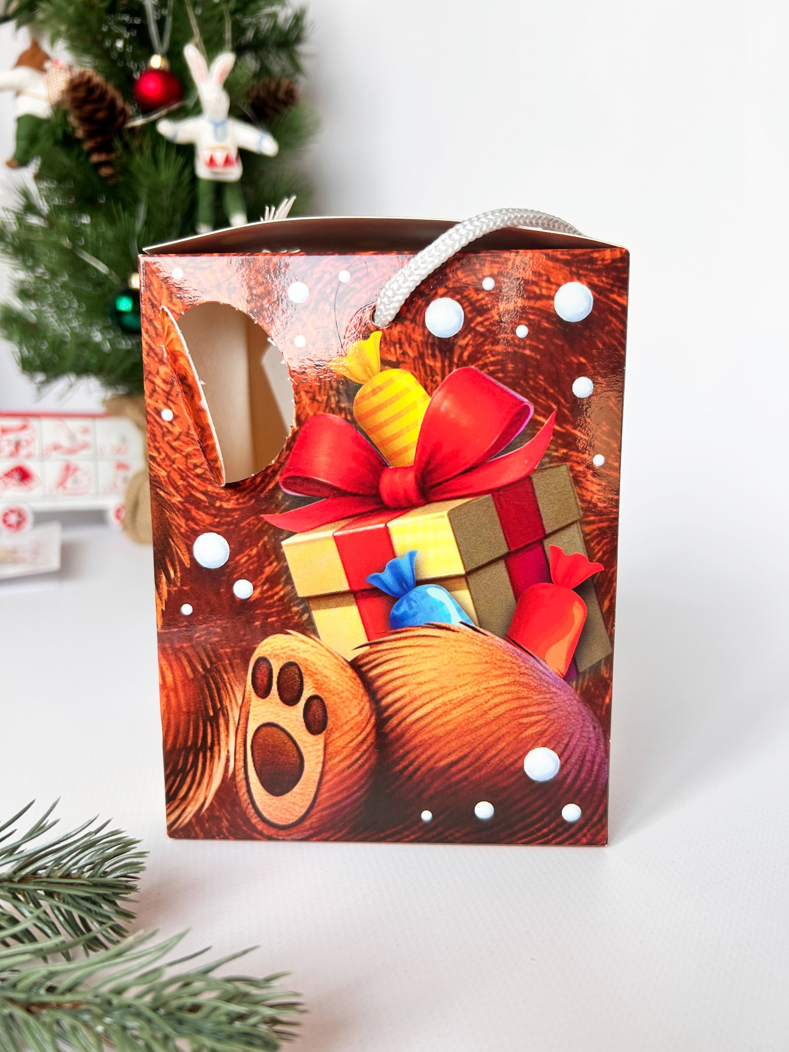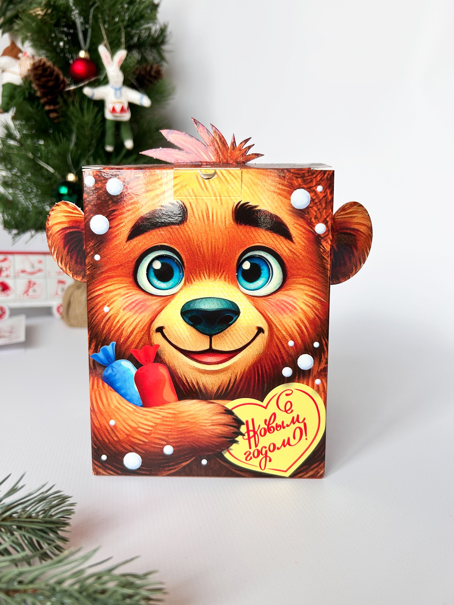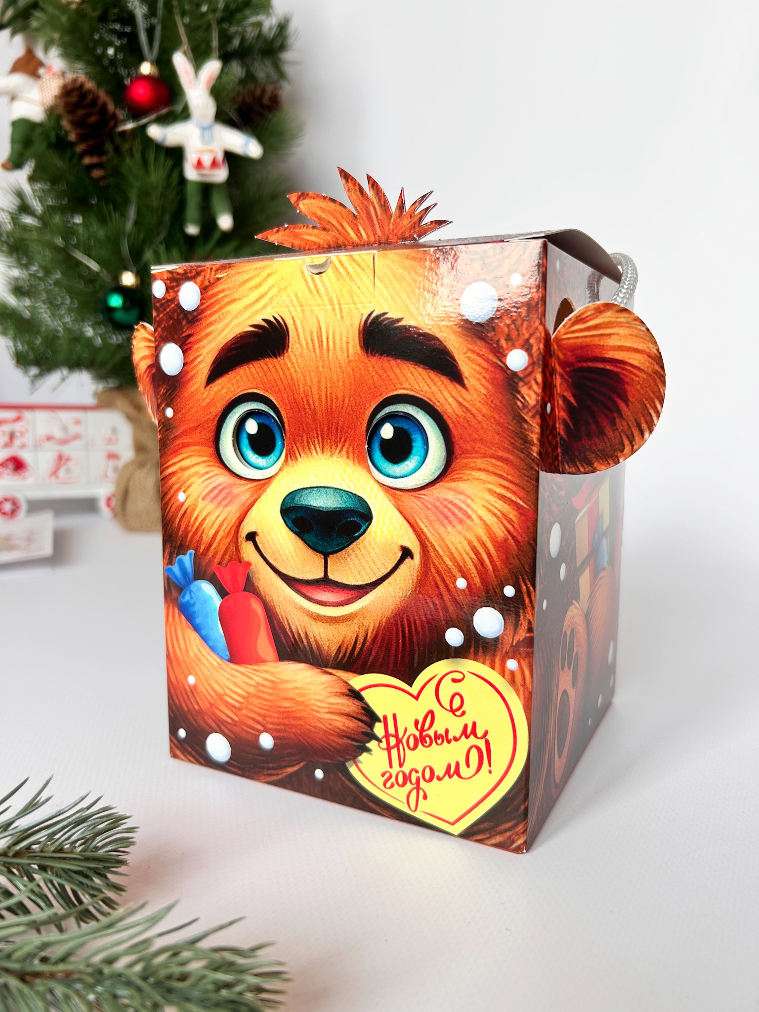 Подарочная упаковка Новогодней тематики от компании Сenter pack наполнит Ваш праздник волшебством, яркими красками и новогодним настроением. Подходит для подарков весом до 600 гр.