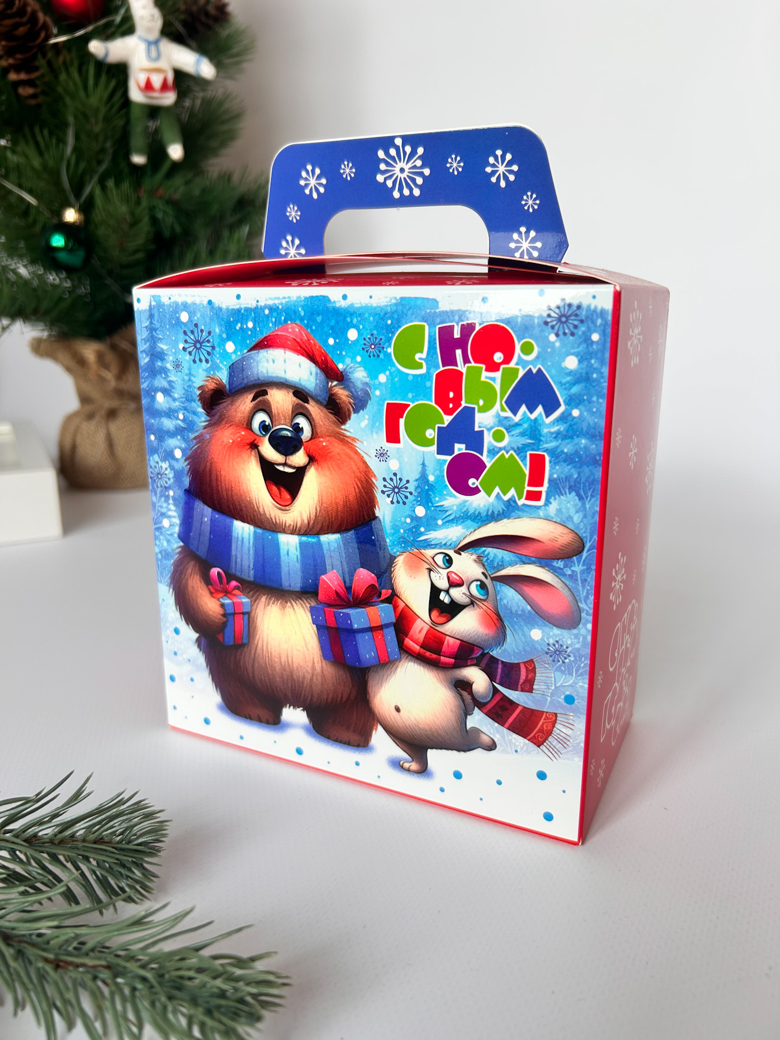 Подарочная упаковка Новогодней тематики от компании Сenter pack наполнит Ваш праздник волшебством, яркими красками и новогодним настроением. Подходит для подарков весом до 500 гр.