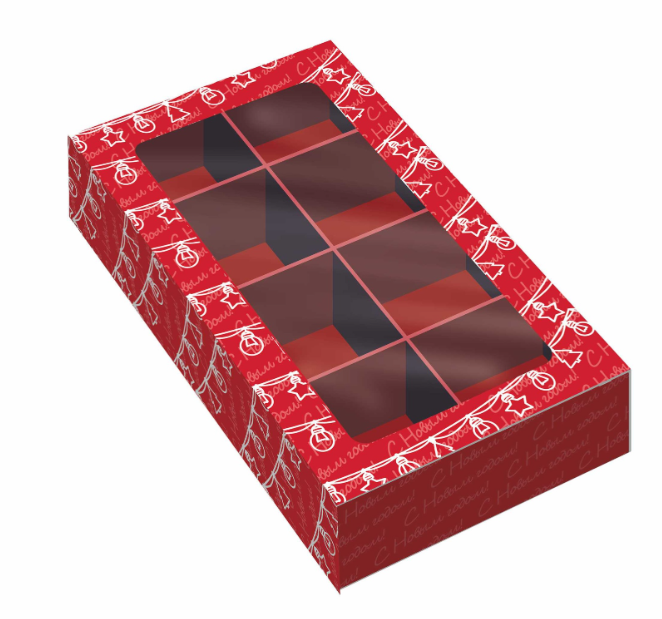 Коробка с окном 8 конфет Гирлянда, 180х100х35 мм (дно и обечайка)