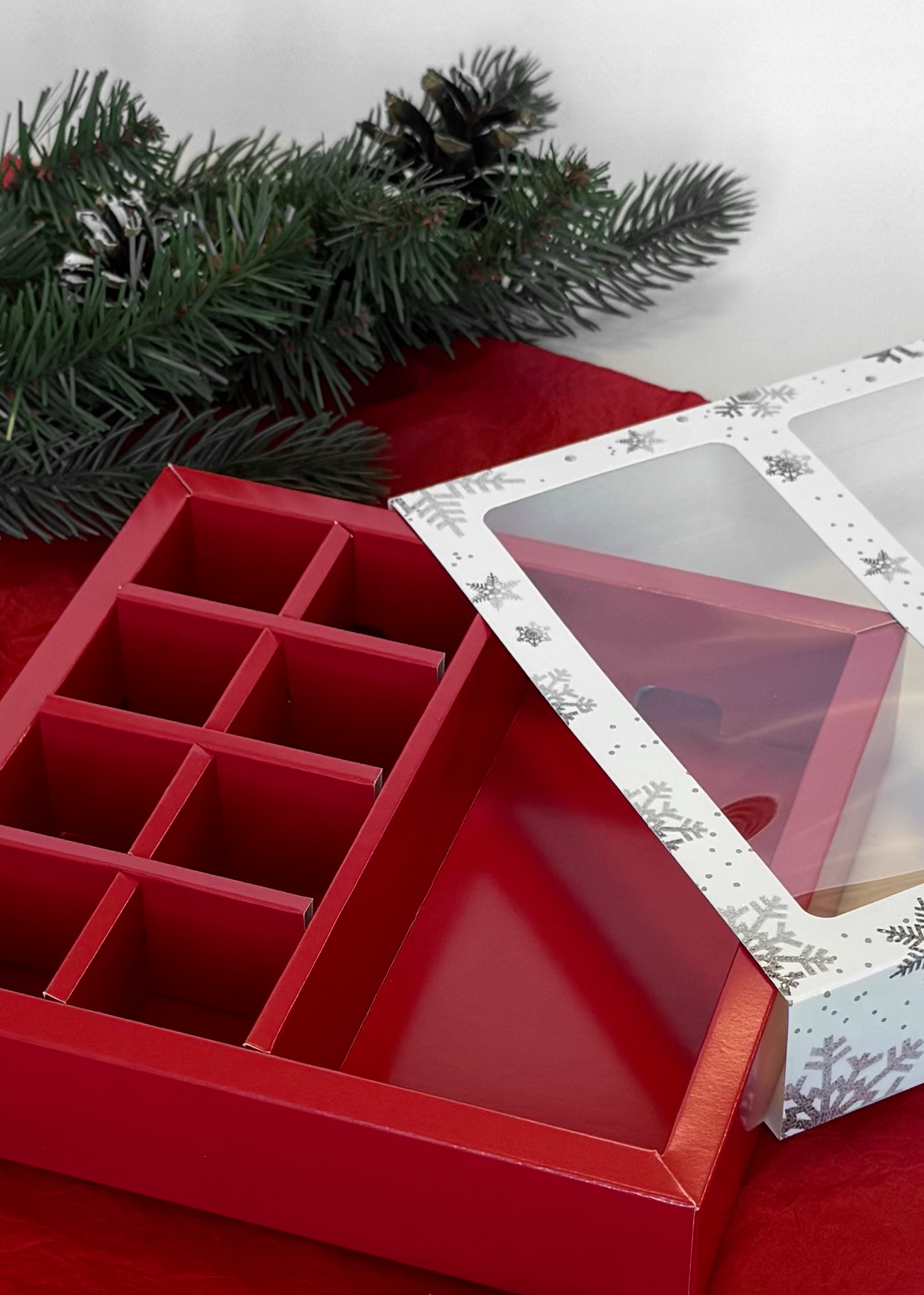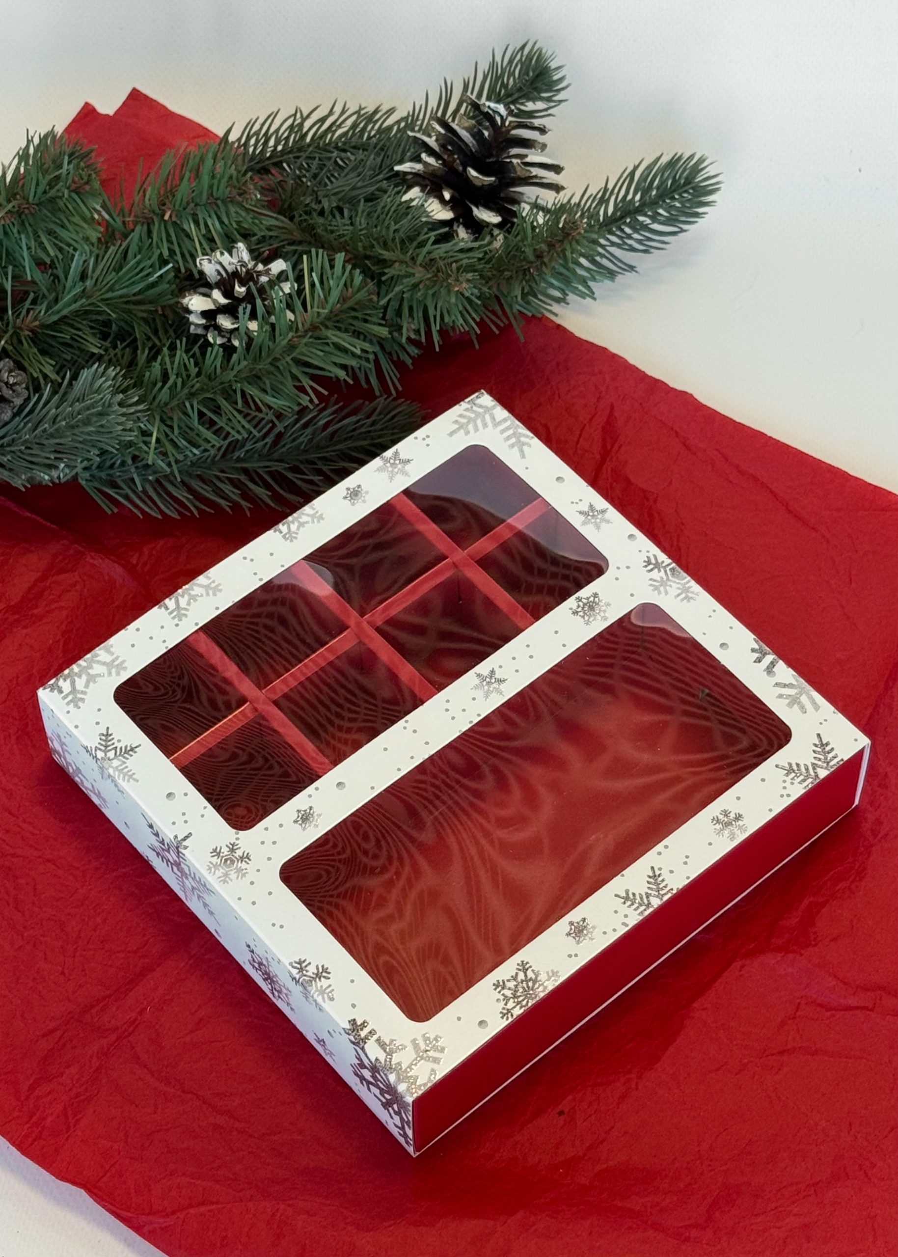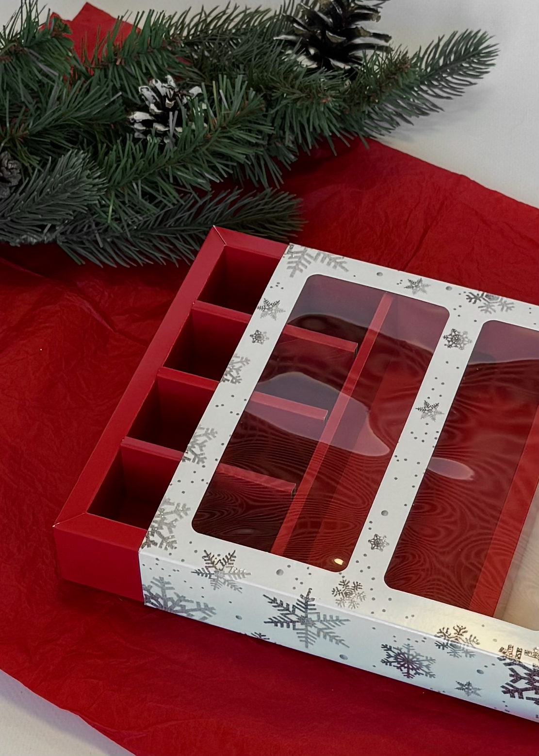 Коробка с окном 8 конфет плитка шоколада Новогоднее серебро, 177х178,5х38,5 мм (дно и обечайка)