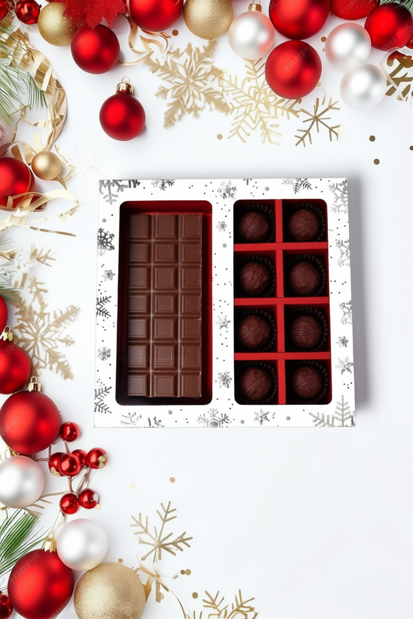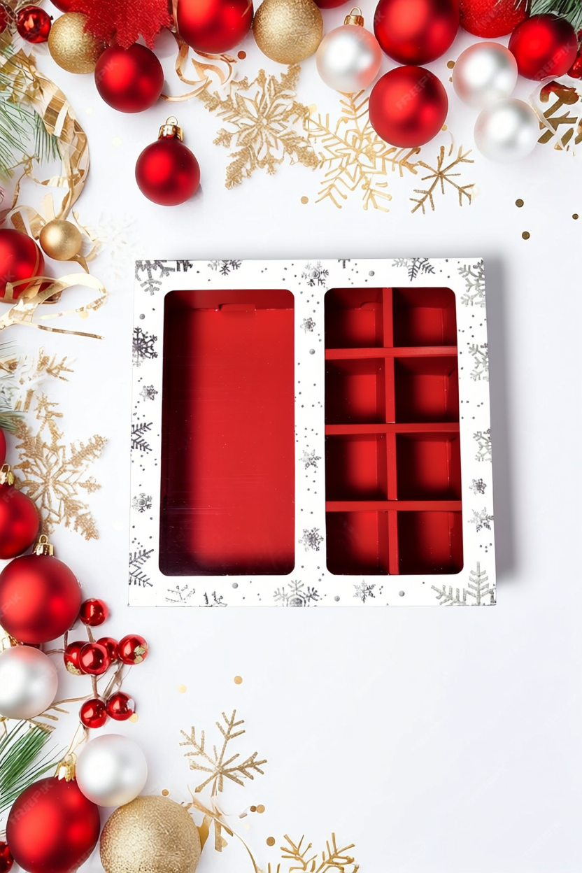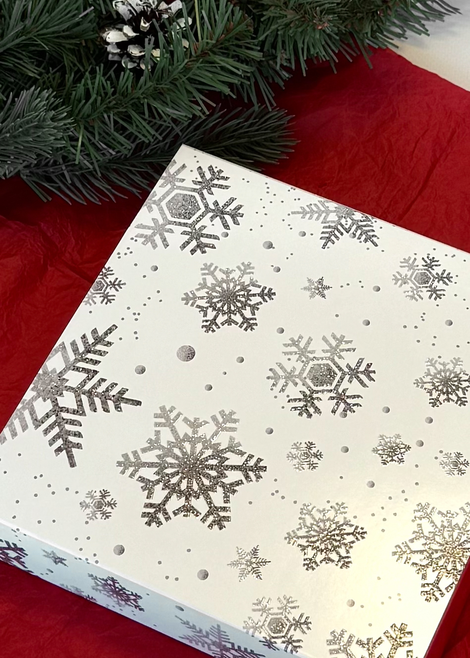Коробка с окном 8 конфет плитка шоколада Новогоднее серебро, 177х178,5х38,5 мм (дно и обечайка)