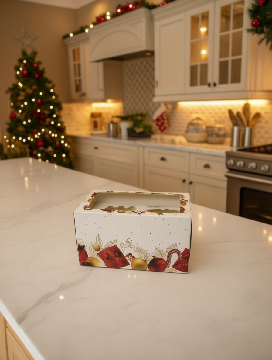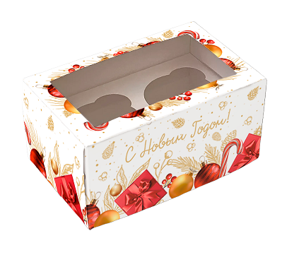 Кондитерская упаковка с новогодним дизайном. Подходит для размещения 2 капкейков, кексов, маффинов, пирожных и иных сладких презентов. Может быть использована для размещения изделий ручной работы, оформления подарков.
