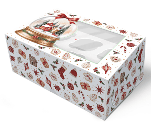 Коробка с окном под 6 капкейков Новогодний подарок, 250х170х100