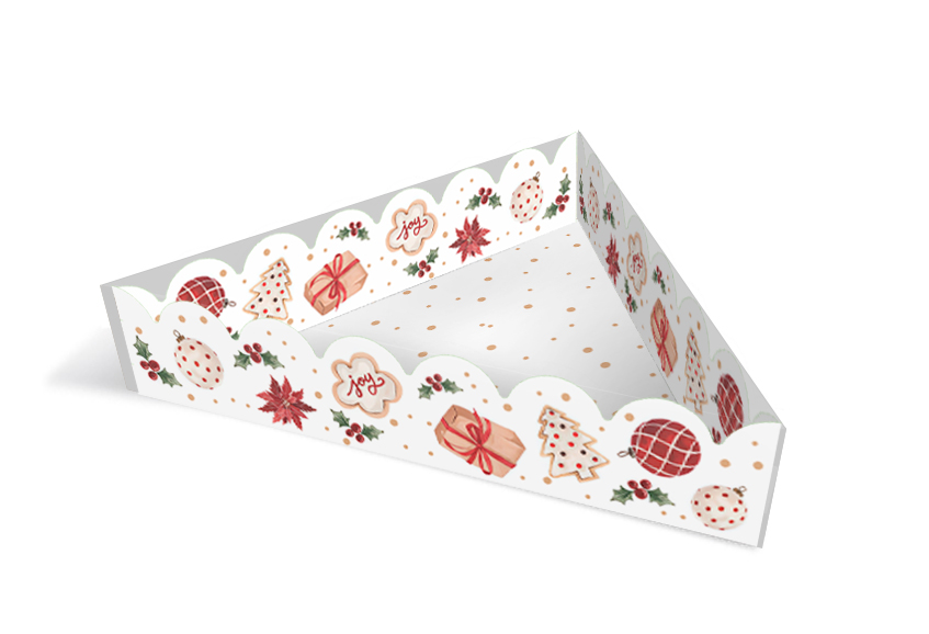 Треугольная коробочка новогодней тематики с краем в виде волны. Универсальная упаковка для размещения кондитерских изделий, подарочной продукции и изделий ручной работы.