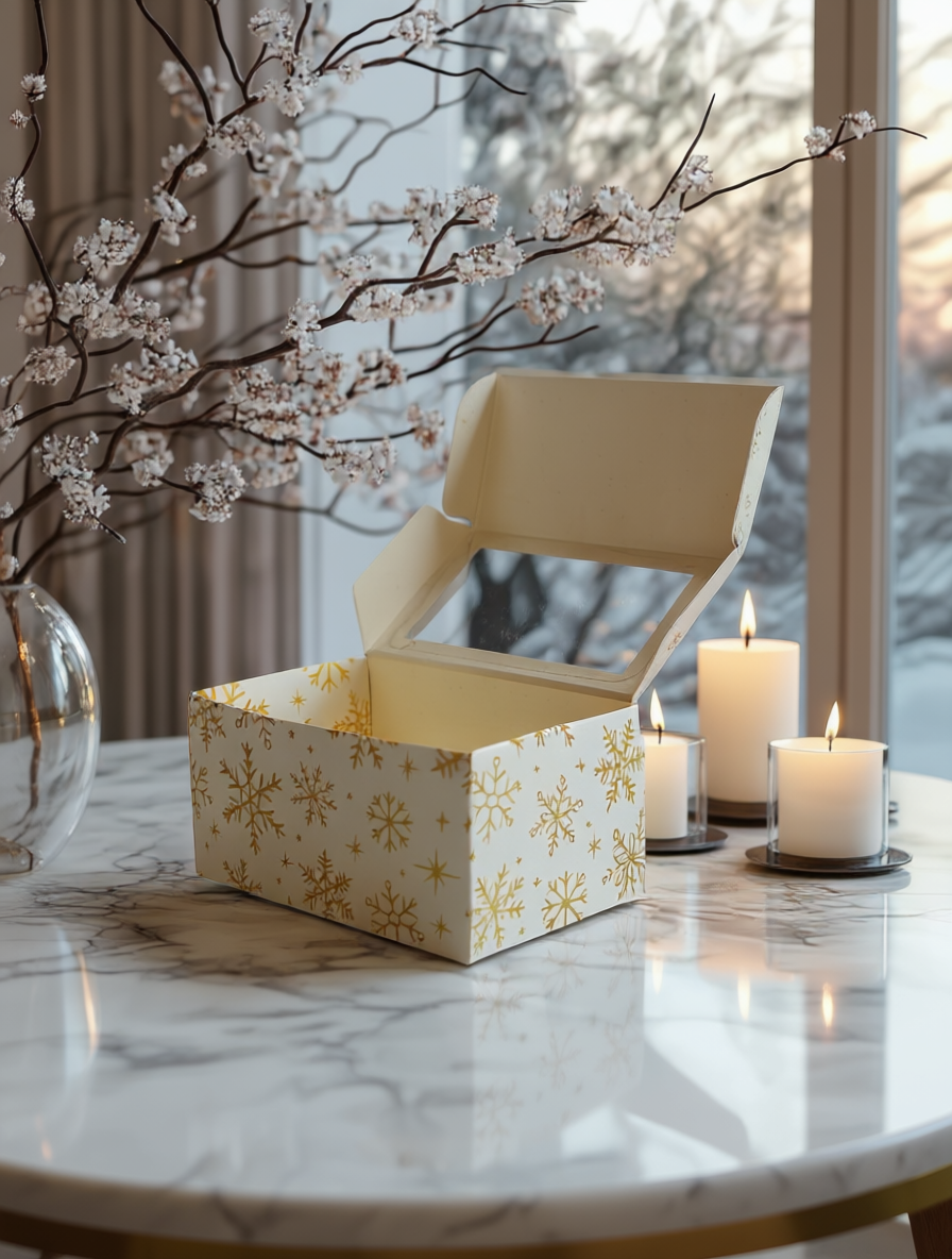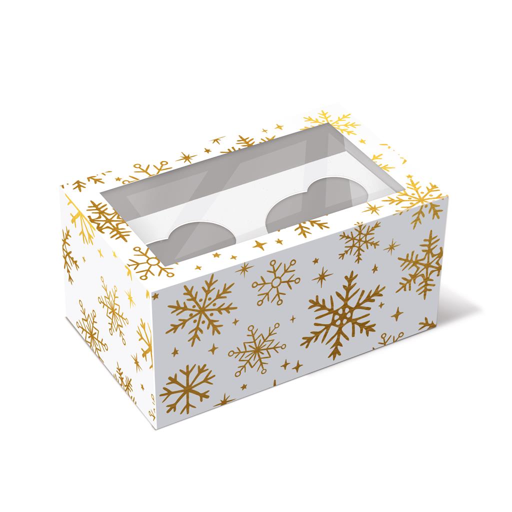 Коробка с окном под 2 капкейка Снежинки на белом, 160х100х80 мм