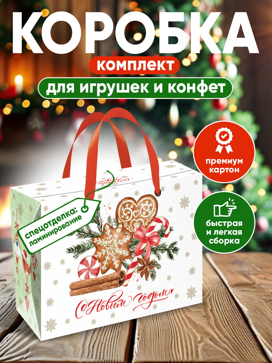 Коробка новогодняя подарочная Ночная прогулка, 140х55х190 мм