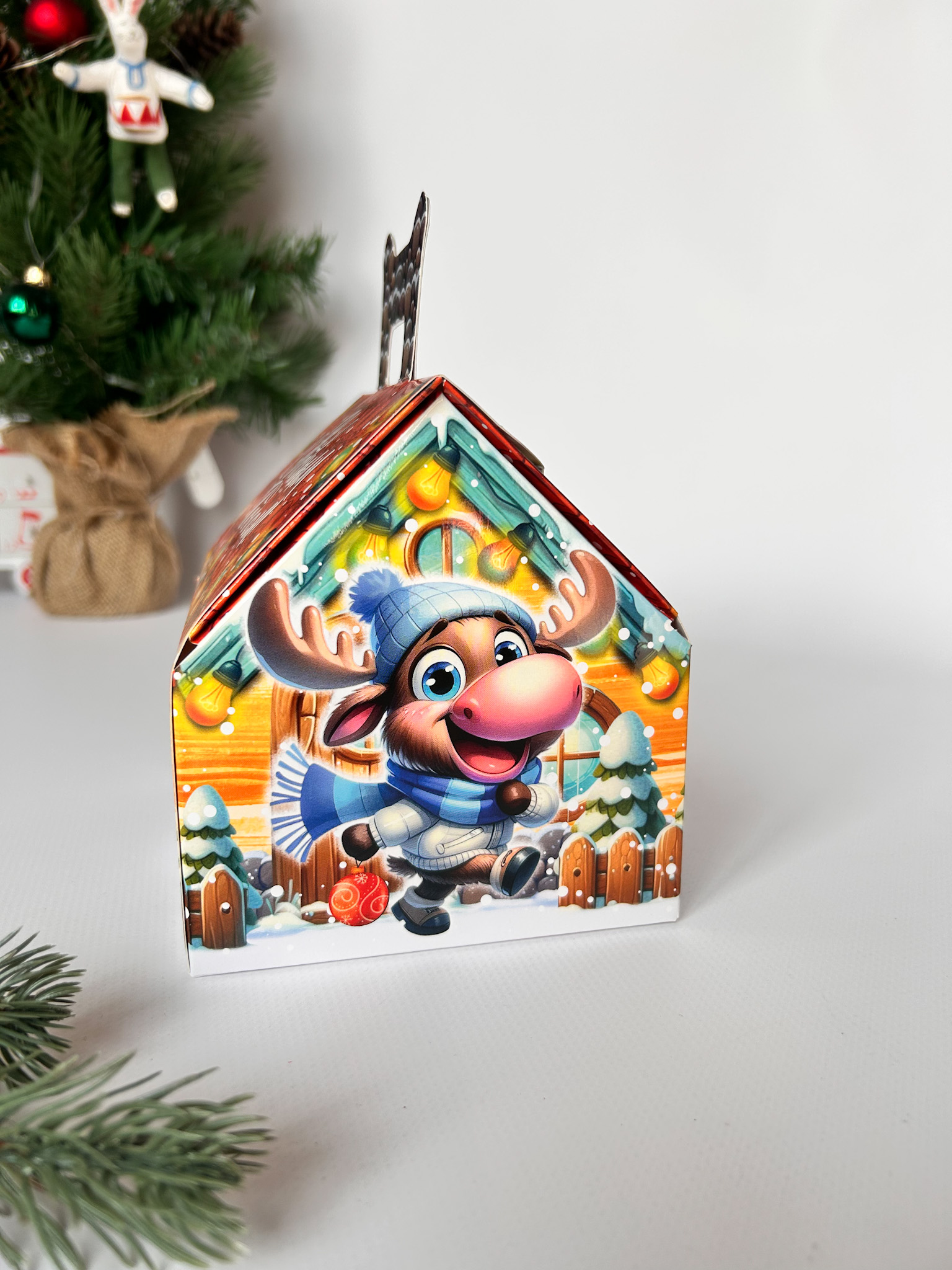 Коробка новогодняя подарочная Новогодний квинтет, 90х70х200 (+30) мм (домик)