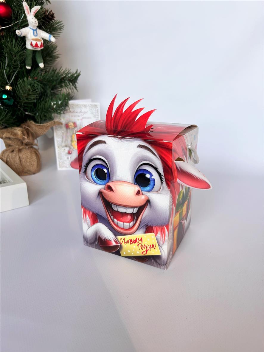Коробка новогодняя подарочная Смекубик Конёк, 120х120х155 мм (коробка со шнурком)