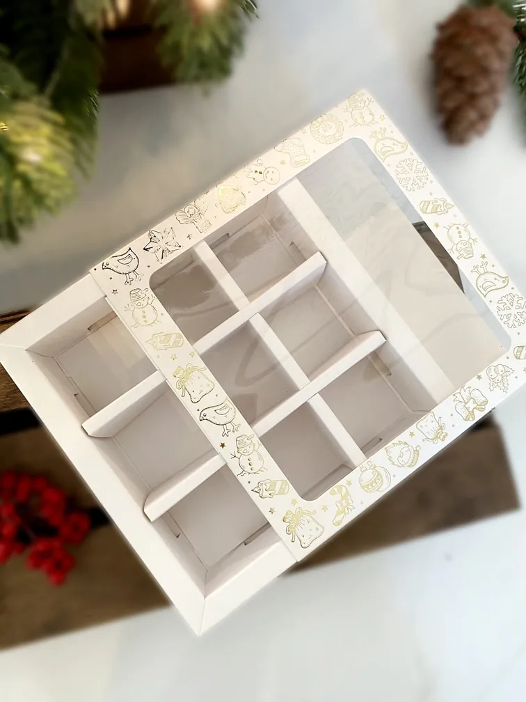 Коробка с окном под 9 конфет Золотой Новый Год, 138х138х38 мм (дно и обечайка)