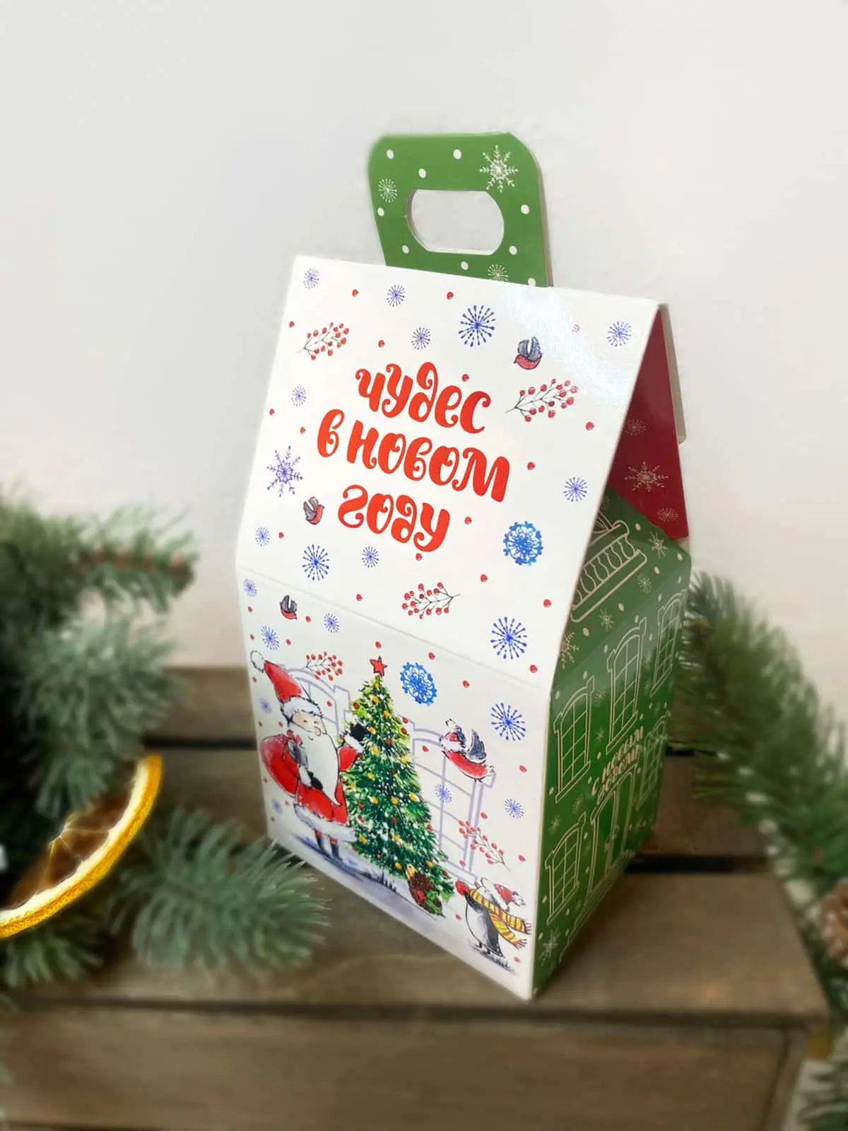 Коробка новогодняя подарочная Акварельная серия, 91х70х157 (+30) мм (домик)