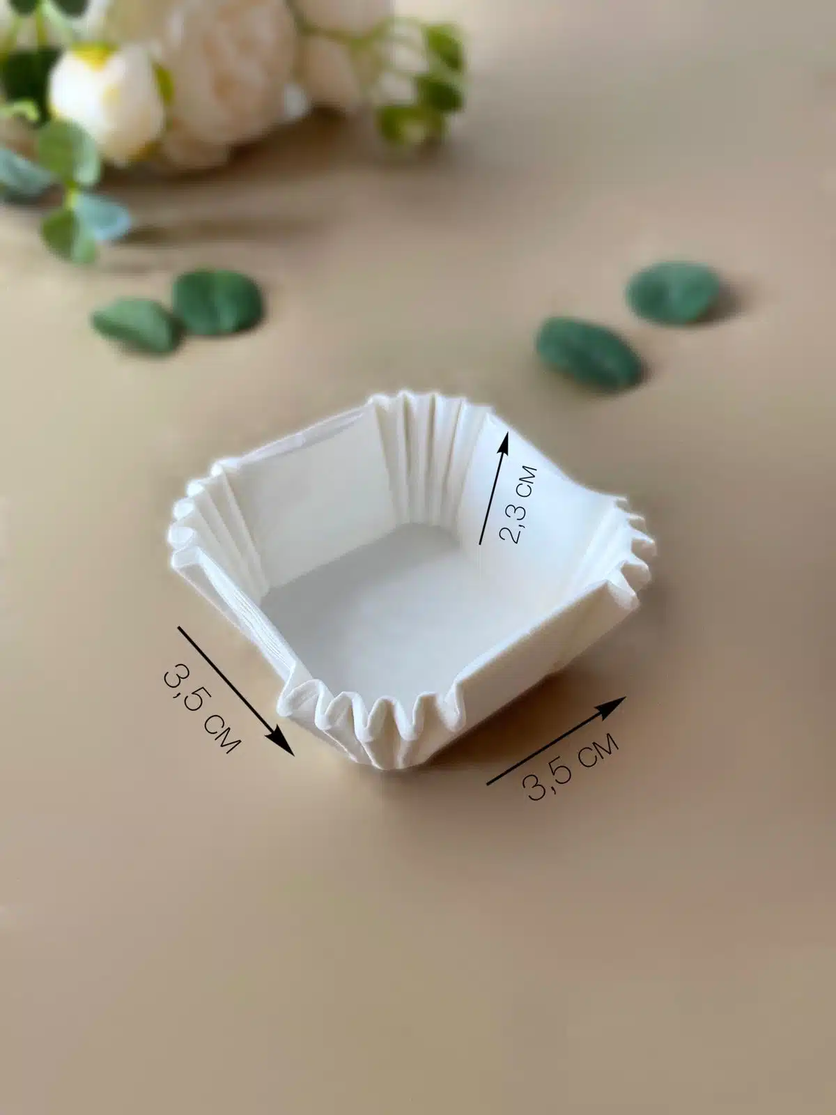 Бумажные капсулы для конфет имеют квадратную форму размером 3,5х3,5 см и высотой 2,3 см. Подходят для упаковки