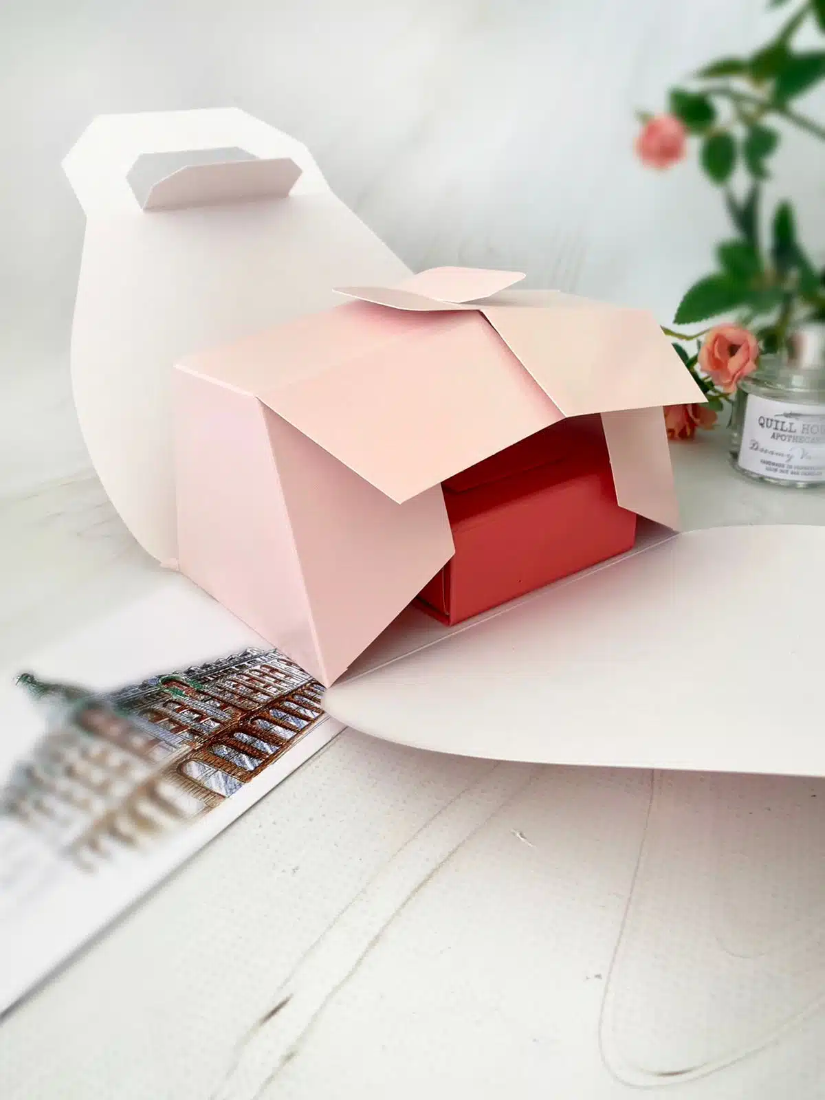 Подарочная упаковка универсального назначения. В качестве отделки используется тиснение розовой фольгой