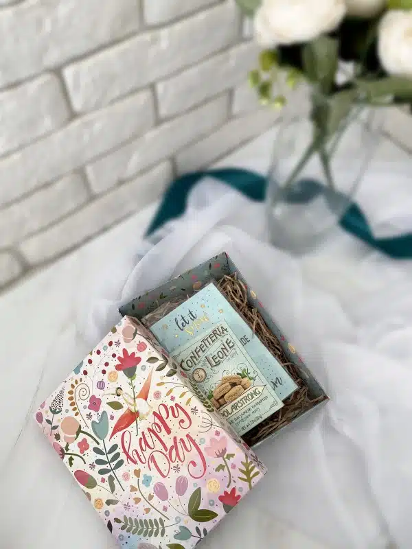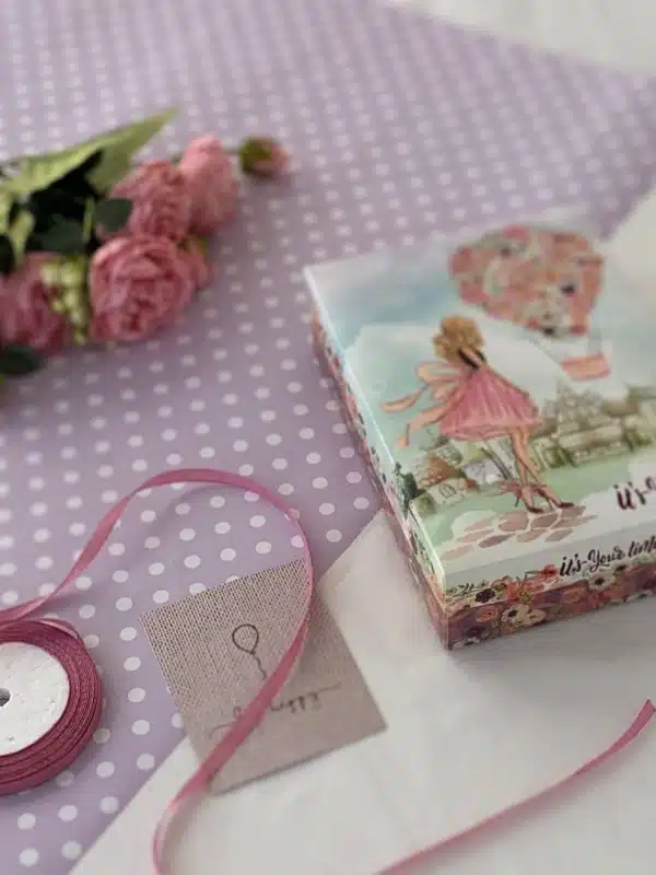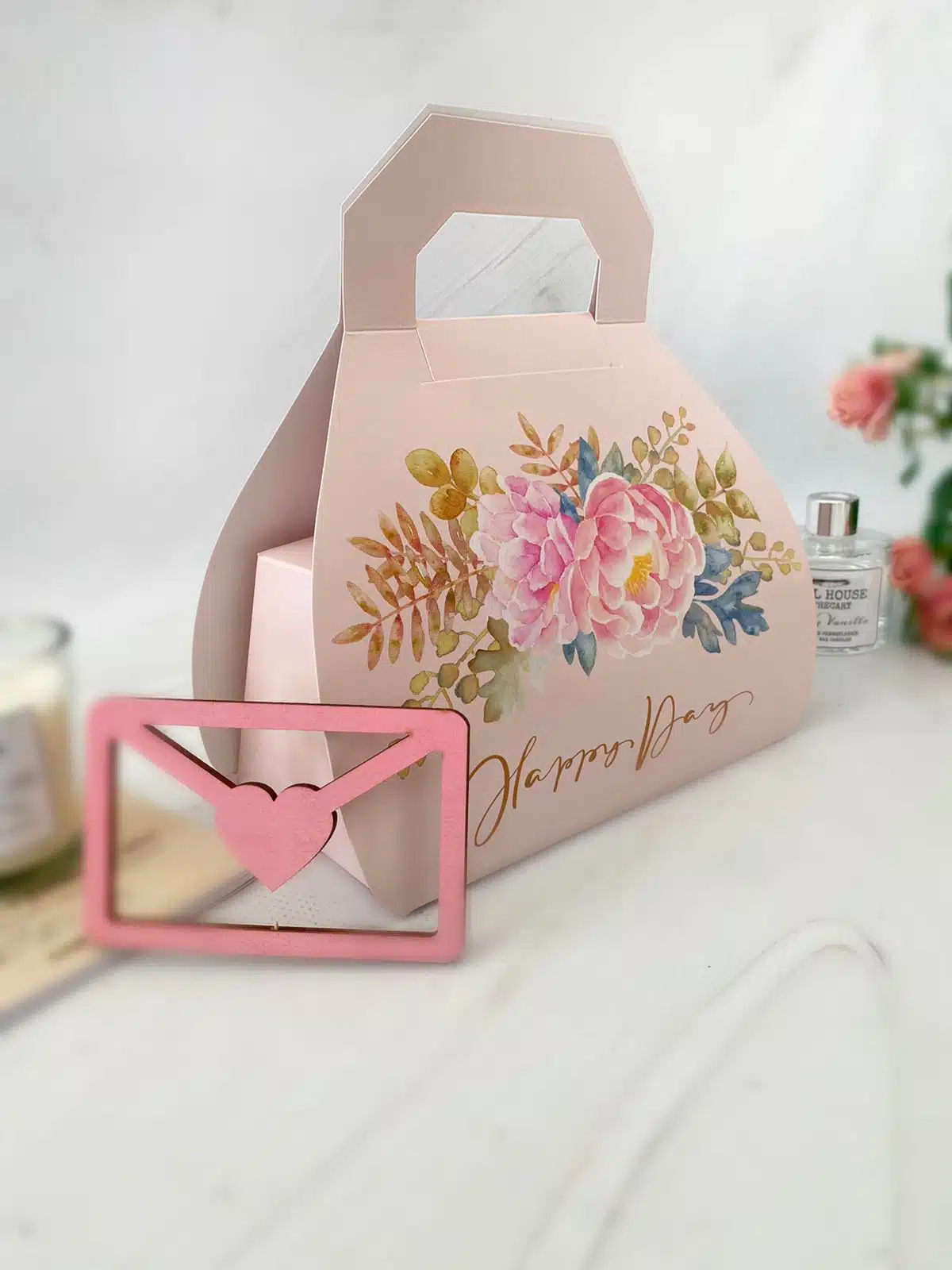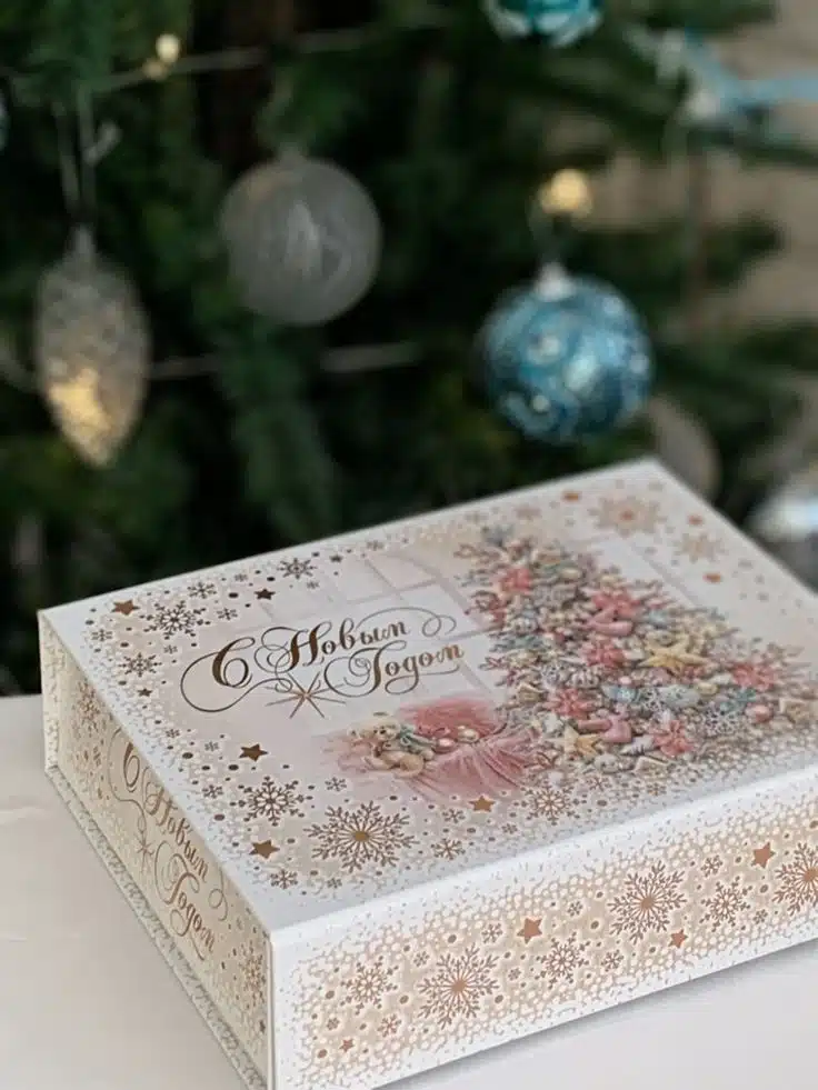 Подарочная упаковка универсального назначения. В качестве отделки используется тиснение розовой фольгой