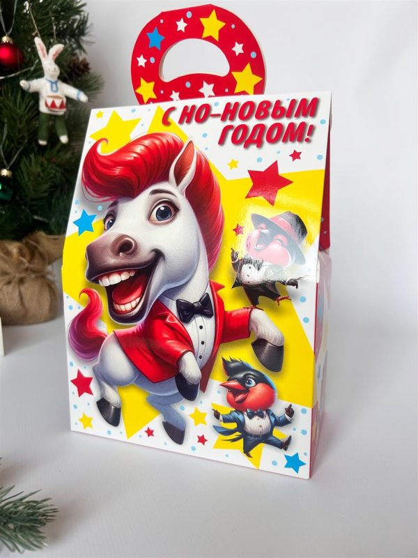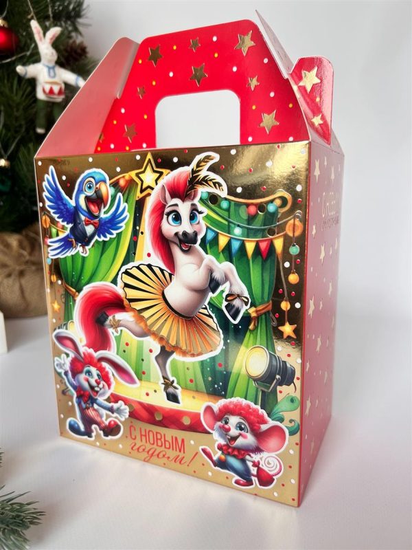 Подарочная упаковка Новогодней тематики от компании Сenter pack наполнит Ваш праздник волшебством, яркими красками и новогодним настроением. Подходит для подарков весом до 1000 гр.
