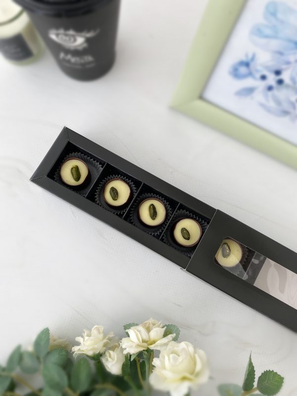 Кондитерская упаковка. Коробка пенал в белом цвете на 3 конфеты, выполнена из высококачественного картона. Размер ячеек 3,5х3,5х33 см. Может быть использована для размещения конфет ручной работы, орехов в шоколаде и иных сладких презентов небольших размеров