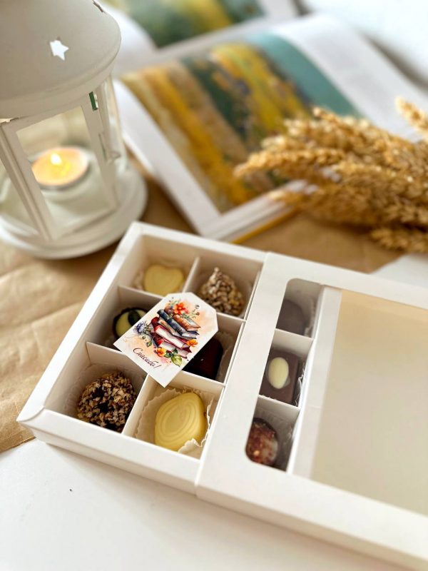 Коробка с обечайкой - коробка пенал на 9 конфет с внутренними разделителями для конфет с Новогодней тематикой, размер ячейки 40х40х25 мм. Без разделителей подходит для размещения пряников, печенья и иных сладких презентов. Может быть использована для размещения изделий ручной работы.