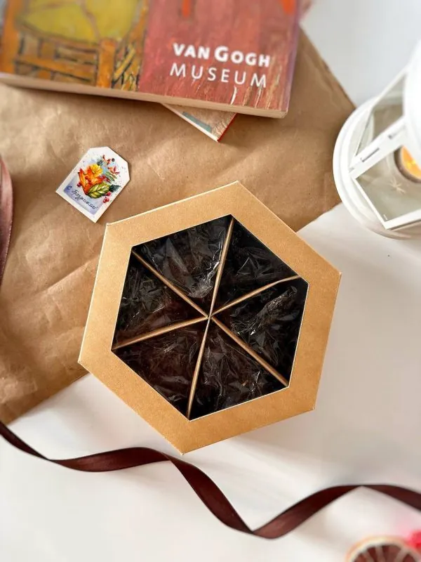 Менажница шестигранник для сухофруктов, орешков, фруктовых чипсов, конфет и иных кондитерских изделий небольшого размера. Подходит для создания наборов на любой вкус.