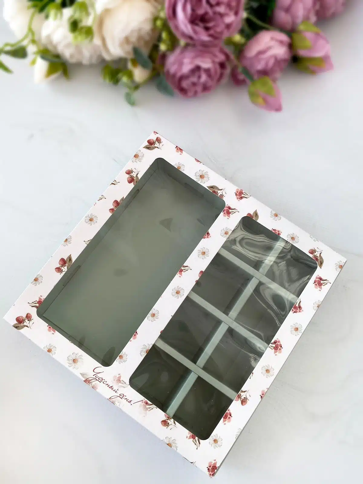 продается упаковками по 5 шт., цена указана за 1 шт. Размер отделения под шоколад 15,5*7,5 см, размер ячеек под конфеты 3,5*3,5*3,5 см.