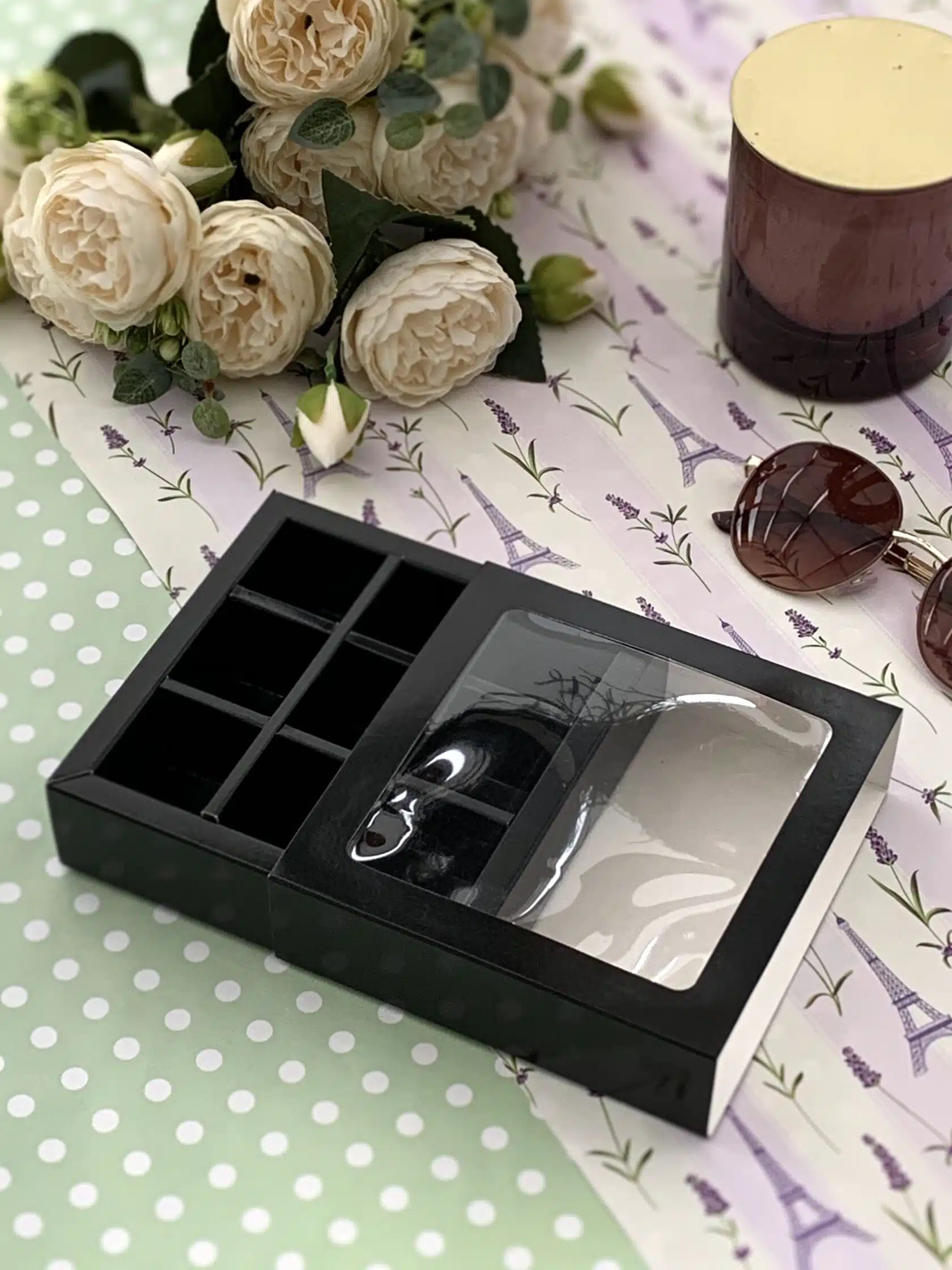 Коробка с обечайкой - коробка пенал на 8 конфет и шоколад с внутренними разделителями. Без разделителей подходит для размещения иных сладких презентов, подарков и изделий ручной работы